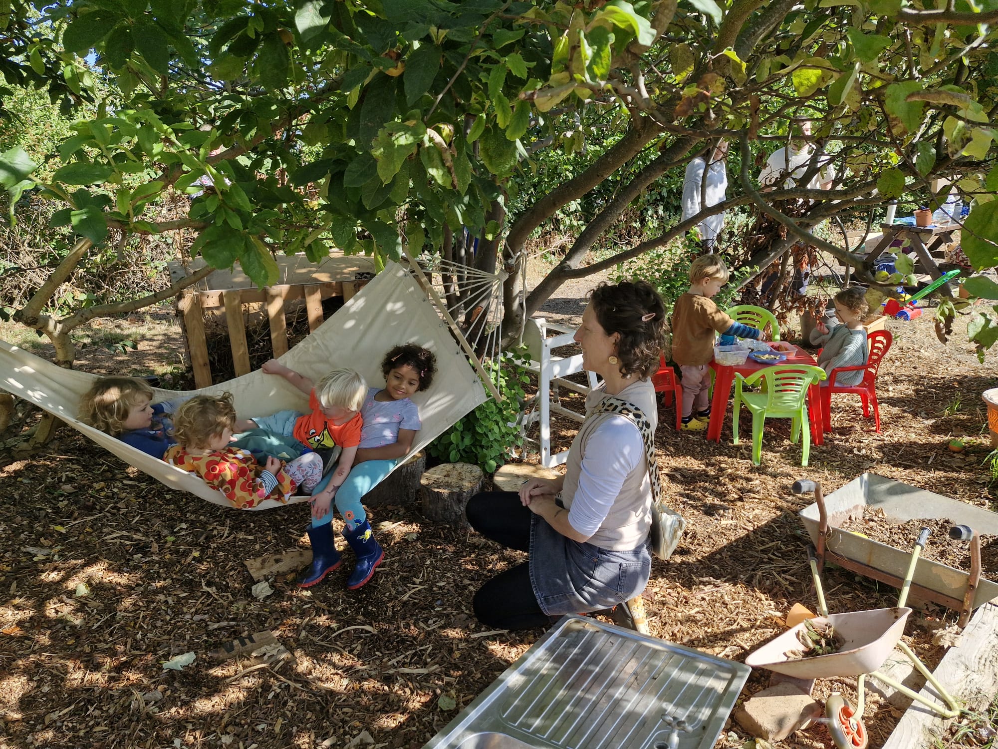 Expect a warm, welcoming and diverse group of adults and their children who enjoy spending time playing, exploring, chatting and slurping a bowl of soup (or munching salad in the warmer weather). We are a volunteer-led group and believe that everyone has something to contribute to the Stone Soup pot - be it a smile, enjoyment of the session, bringing a vegetable for the soup, taking part in organising, or any other way you'd like to take part.